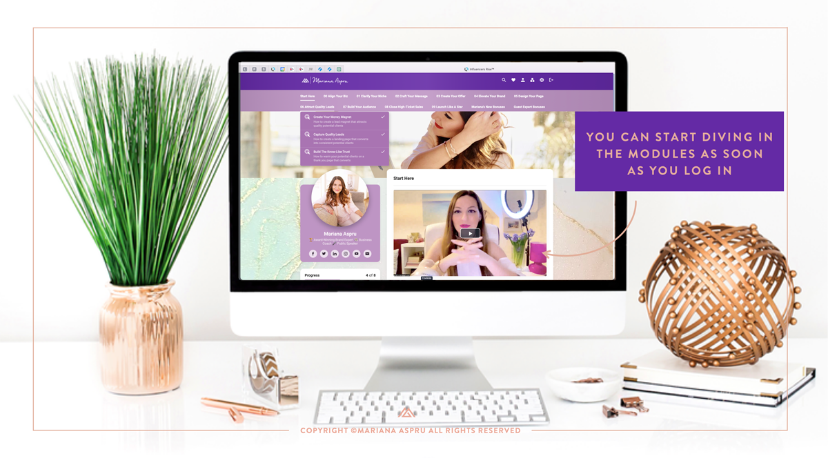 All the course experience bonuses you can see on marianaaspru.com/firstclients ($1997 value)