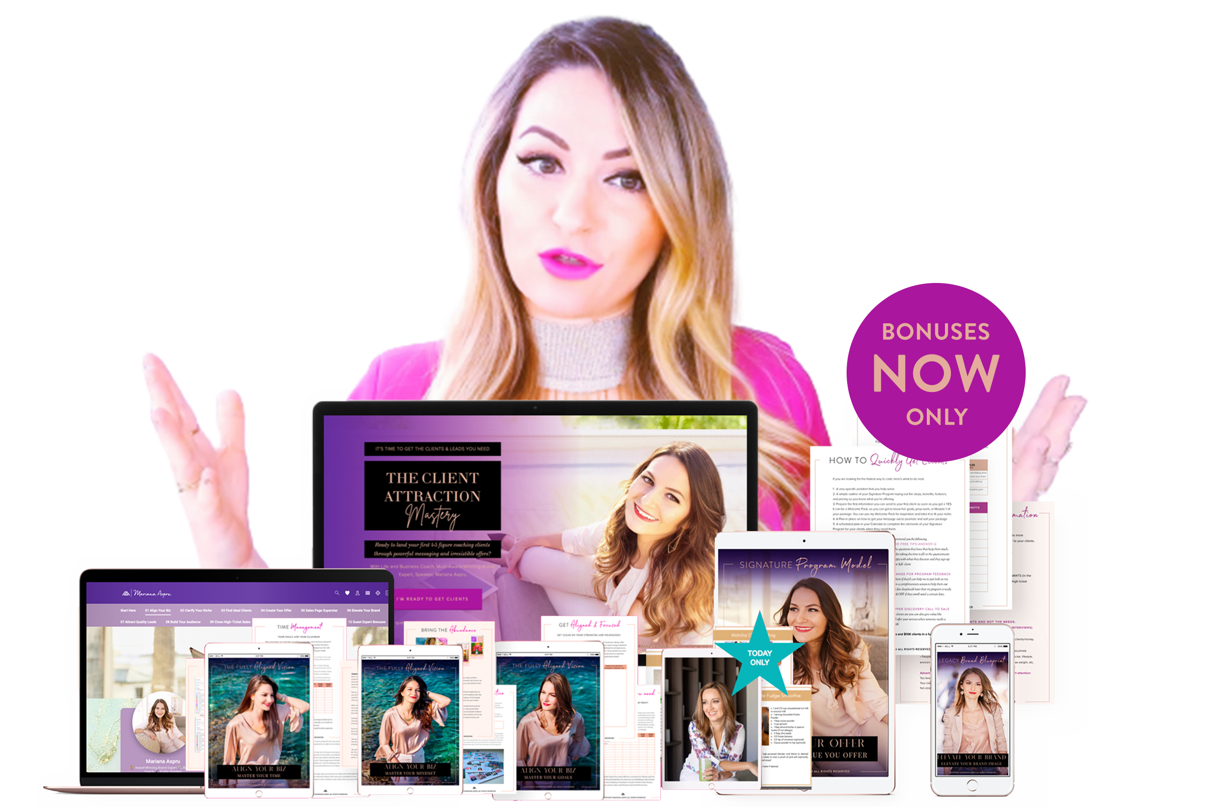 Receive all my templates, scripts, examples to quickly find, attract and land your ideal clients